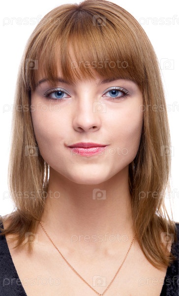 Портрет красивой светловолосой девушки на белом фоне