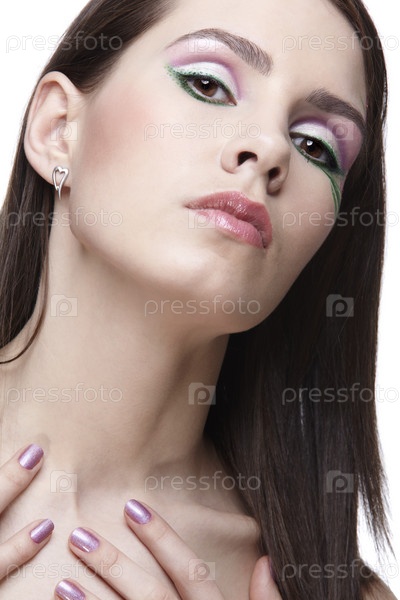 Портрет девушки с элементами боди-арта на виске, на белом фоне