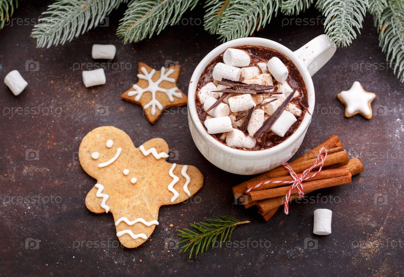 Чашка какао с зефиром и Рождественское печенье