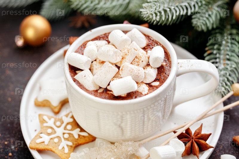 Чашка какао с зефиром и Рождественское печенье