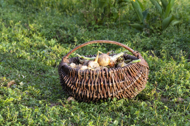 Лук в плетеной корзине