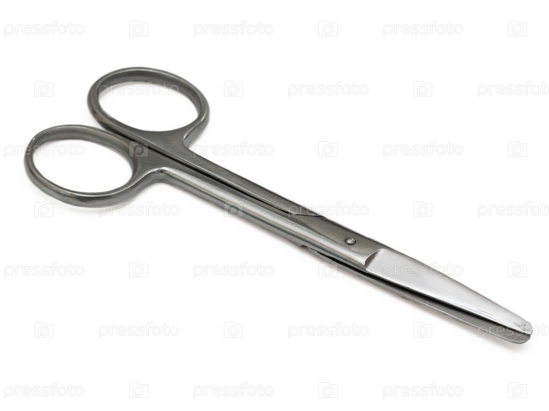 Металлические медицинские ножницы на белом фоне