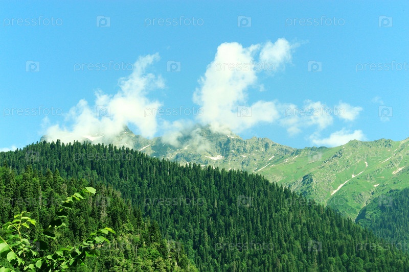 Красивый летний пейзаж с горами и голубым небом