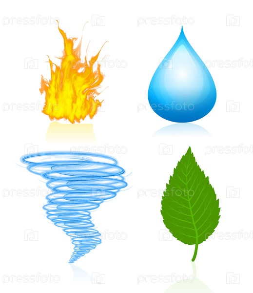 Четыре стихии, иллюстрация на белом фоне
