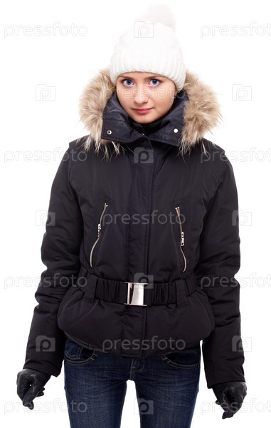 Портрет молодой красивой девушки в белой зимней шапке и шарфе