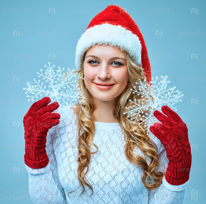 Красивая молодая женщина в одежде Санта-Клауса