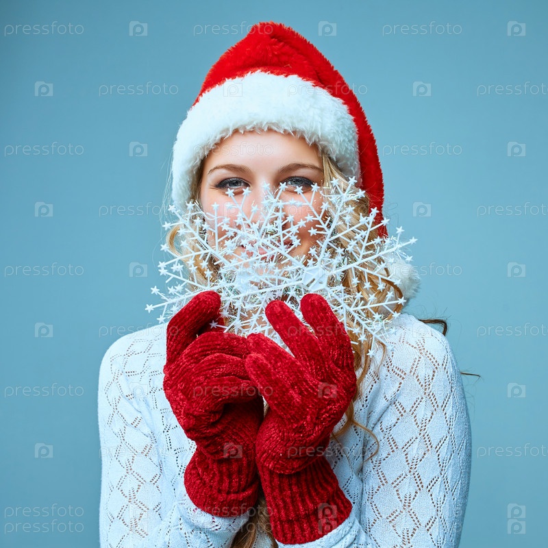 Красивая молодая женщина в одежде Санта-Клауса