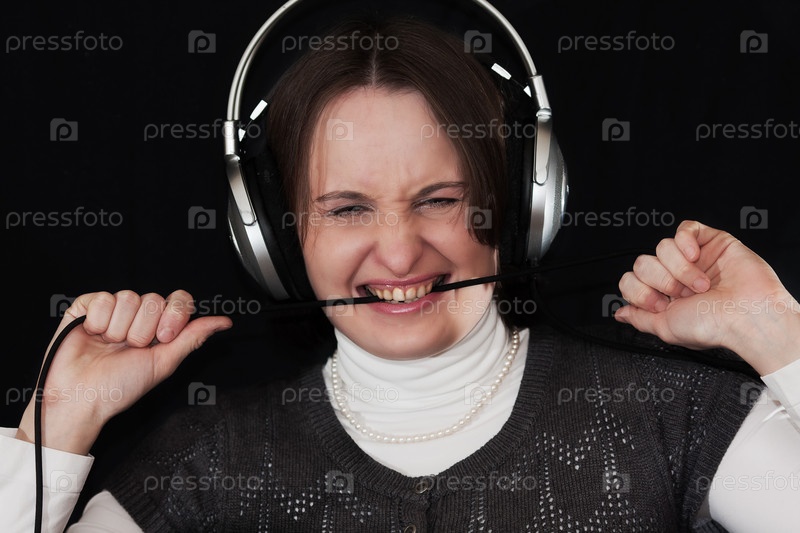 Девушка в наушниках на черном фоне