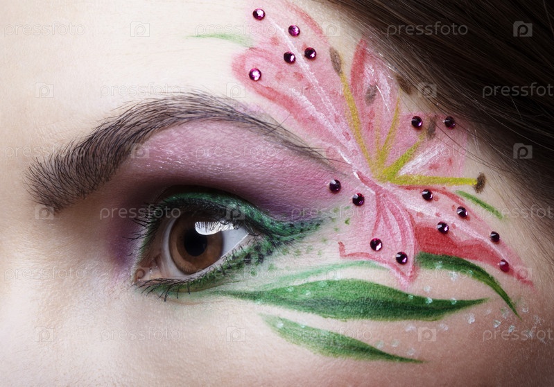 Женское лицо с элементами боди-арта, крупный план