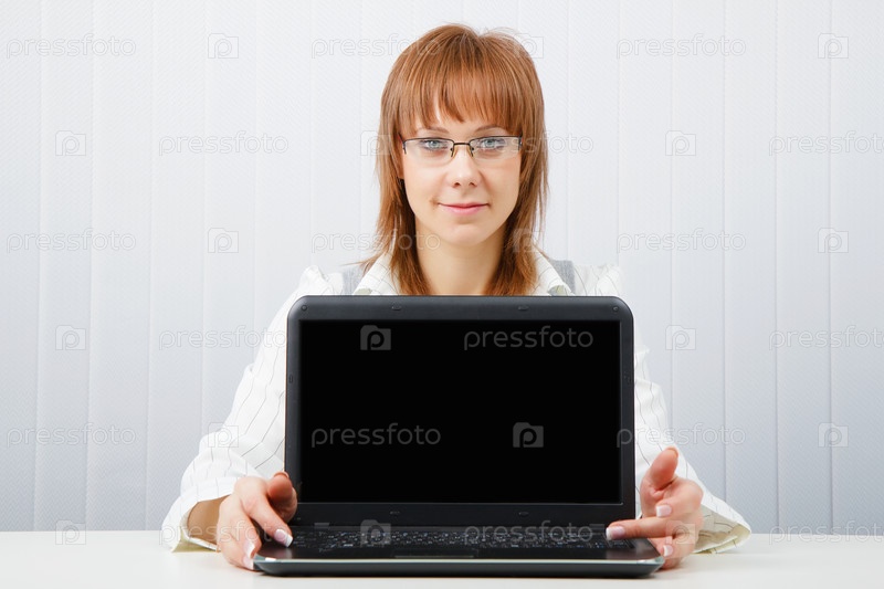 Привлекательная девушка с ноутбуком