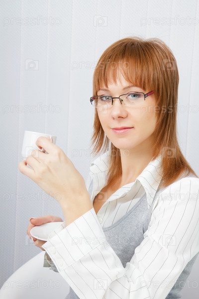 Привлекательная девушка пьет чай