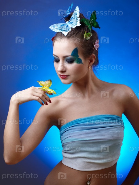 Девушка с бабочкой на руке