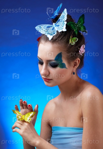Девушка с бабочкой на руке