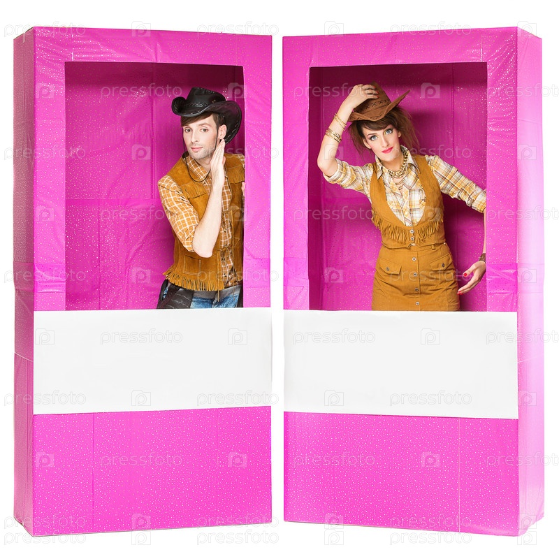 Мальчик и девочка. Изображая кукол в коробках