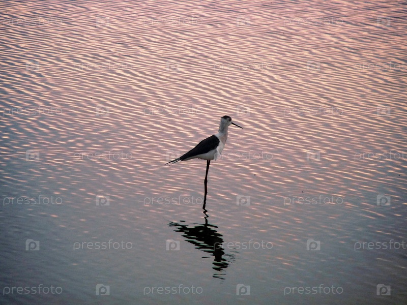 Цапля в воде на закате