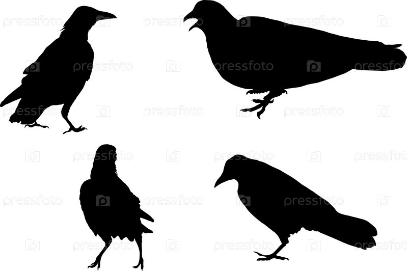 Силуэт голубя и трех ворон. Векторная иллюстрация