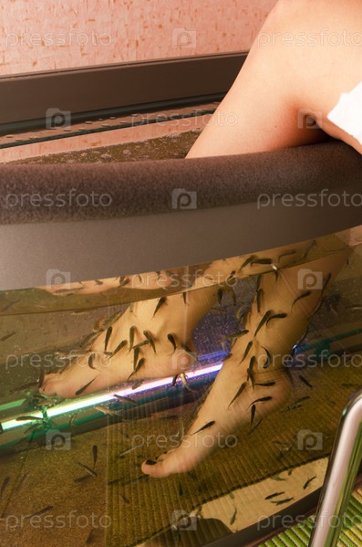 Рыбки делают педикюр в спа-салоне