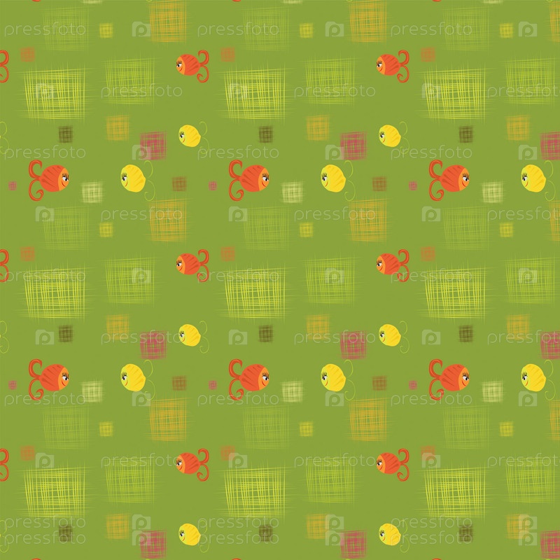 Бесшовная структура рыбами желтого и красного цвета. Векторная иллюстрация