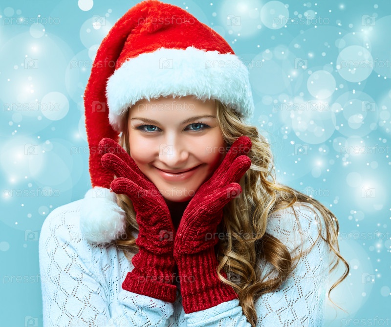 Красивая девушка в рождественской шапке