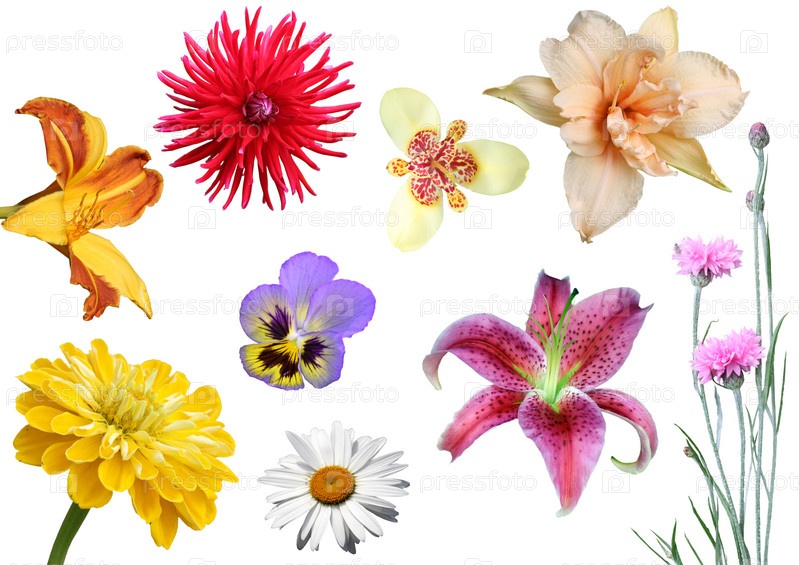 Коллаж из цветов на белом фоне