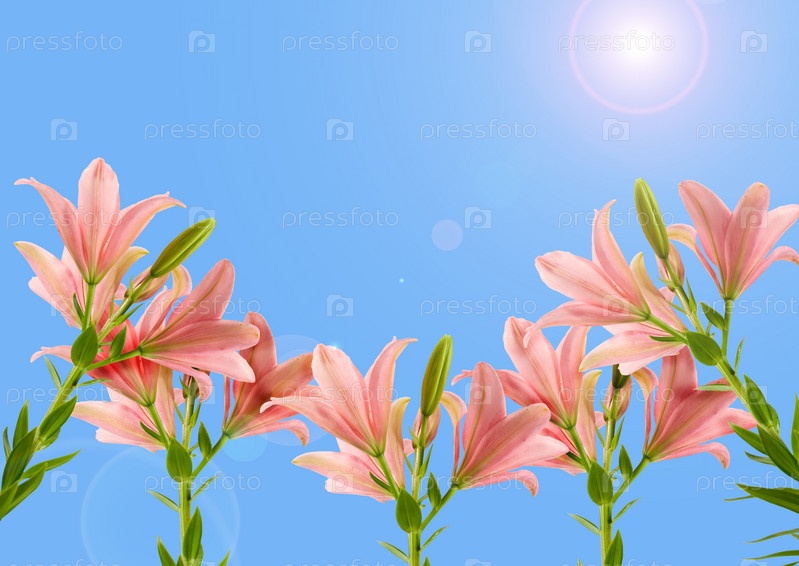 Розовые лилии на фоне голубого неба