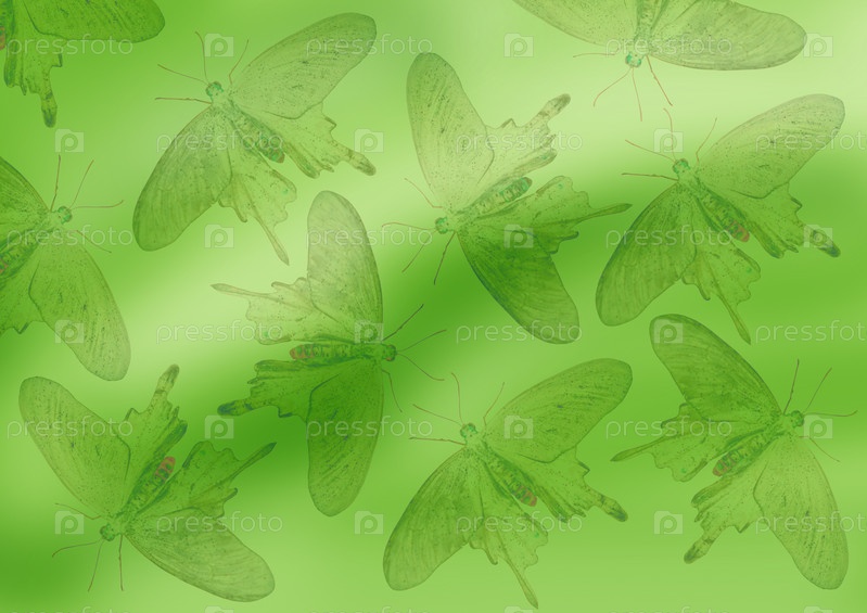 Зеленый фон с бабочками