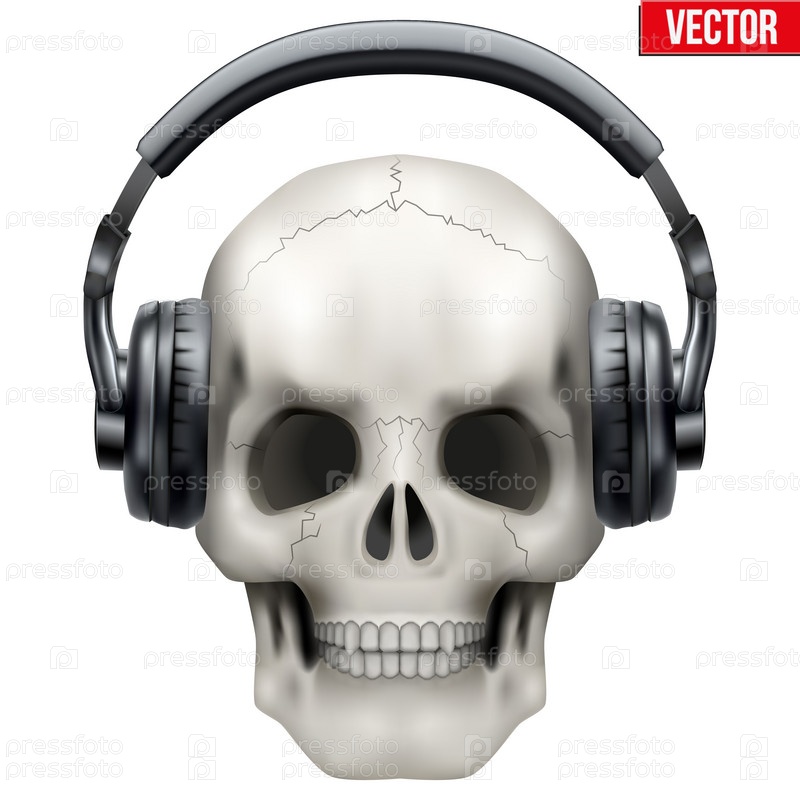 Человеческий череп с наушниками
