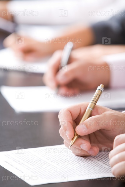 Близкий план человеческих рук с помощью карандаша над деловым документом