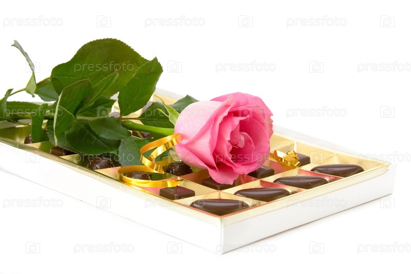 Роза на коробке конфет