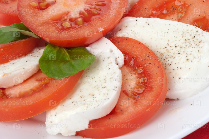 Салат из свежих помидоров и моцареллы