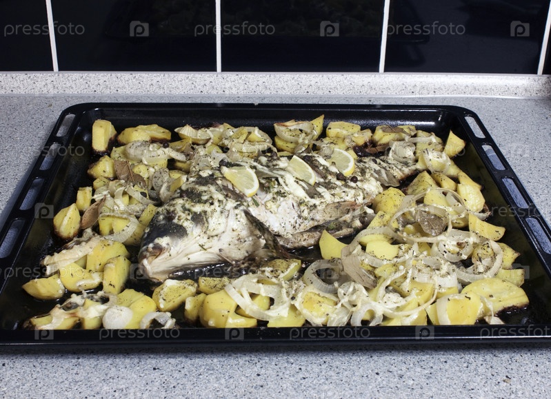 Жареный карп с картофелем и луком