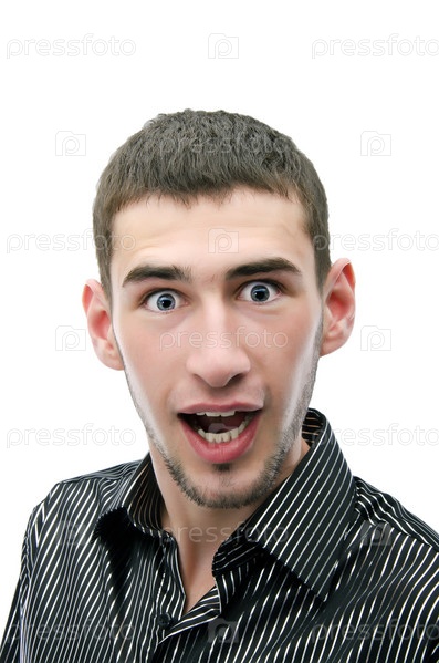 Удивленный молодой мужчина с открытым ртом