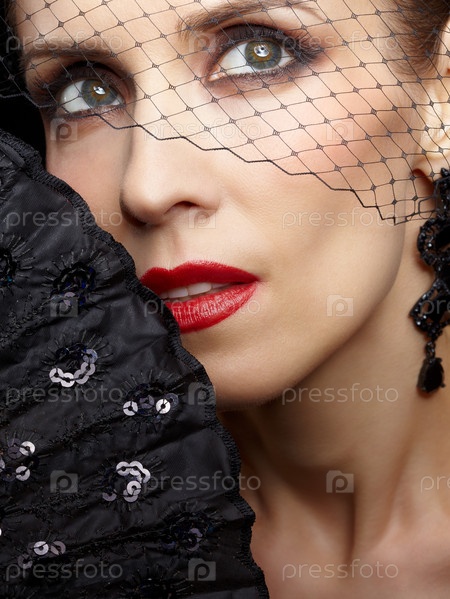 Портрет молодой женщины с вуалью и черным веером