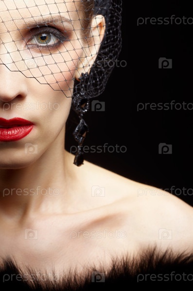 Портрет молодой женщины с вуалью и черным мехом