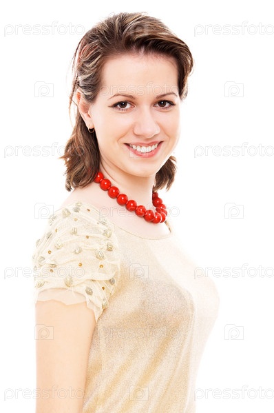 Красивая улыбающаяся женщина на белом фоне
