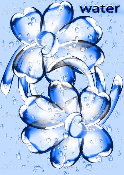 Цветы в каплях воды на голубом фоне