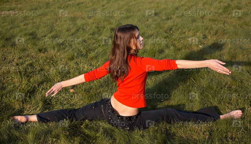 Девушка, тренирующаяся на траве