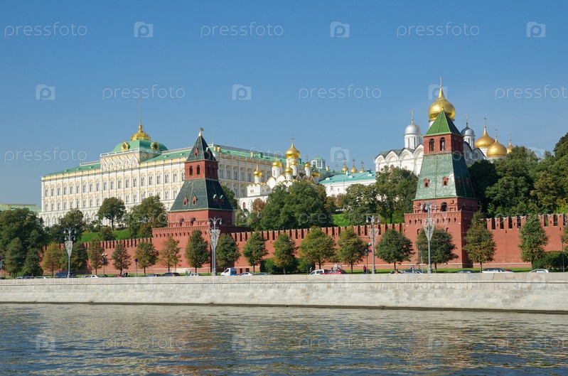 Москва. Красивый вид на Кремль и Кремлевскую набережную ранней осенью