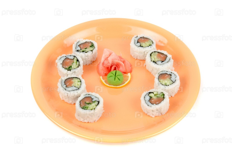 Порция суши, имбирь и васаби