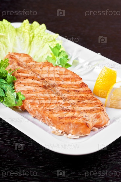Филе лосося, жаренного на гриле, с овощами