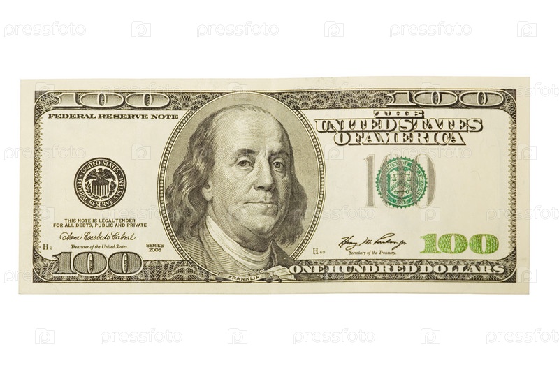 Стодолларовая купюра на белом фоне