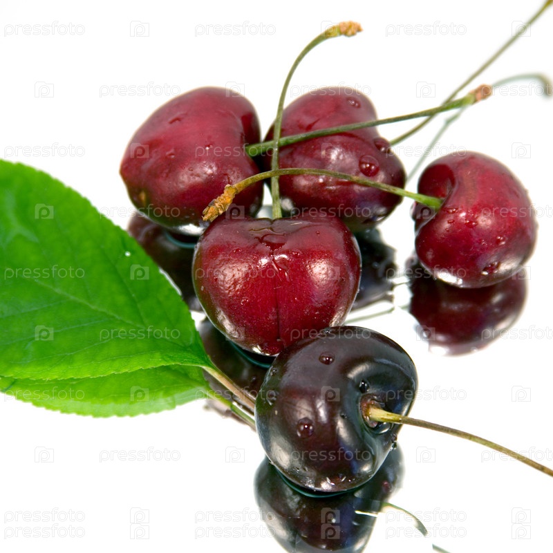 Черешня в каплях воды