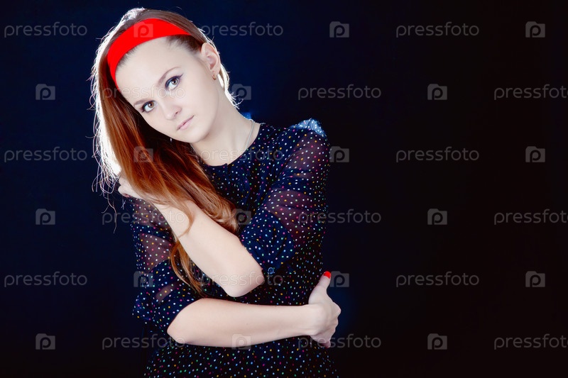 Девушка позирует на черном фоне