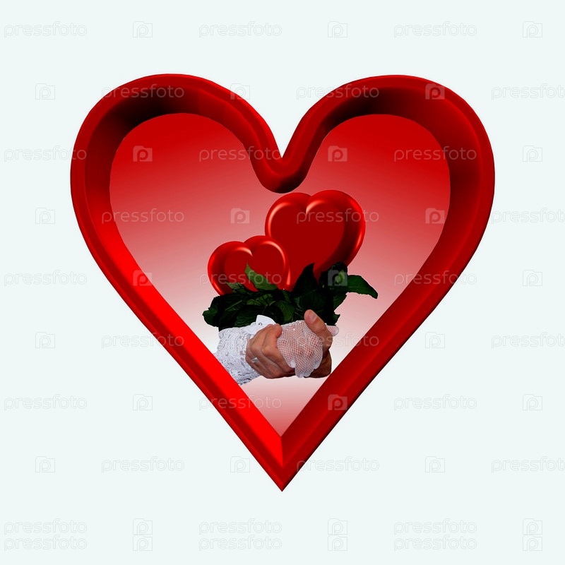 Два сердца как букет в большом красном сердце
