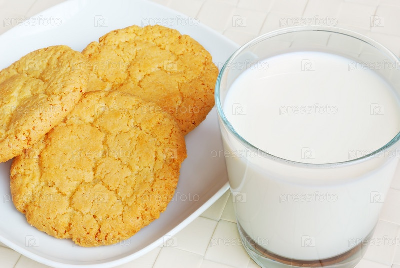 Овсяное печенье и стакан молока на столе