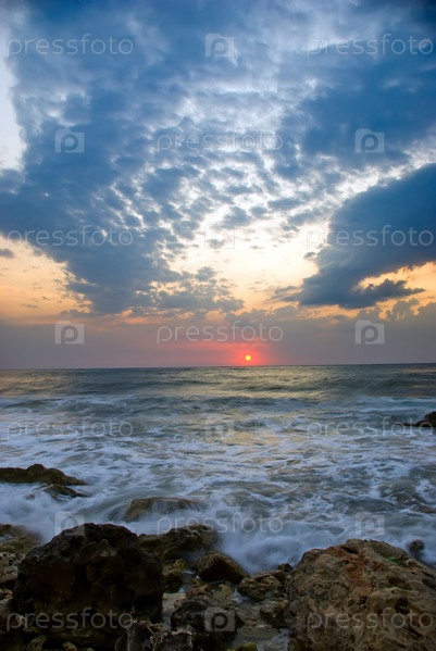 Каменистый морской берег перед рассветом