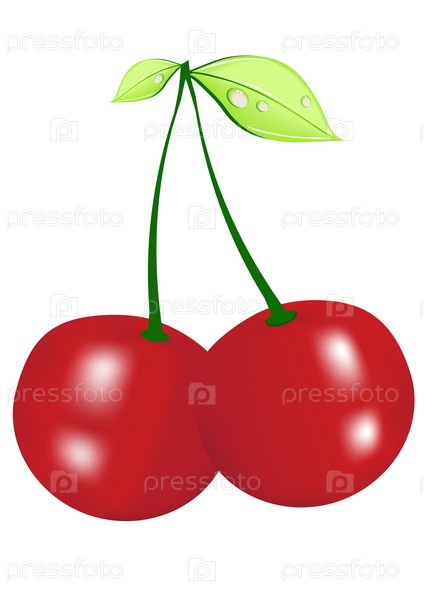Нарисованная вишня на белом фоне