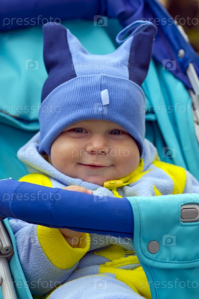 Маленький ребенок, сидящий в коляске