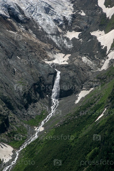 Водопад, ледник и зеленая долина