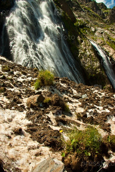 Водопад на летнем горном склоне